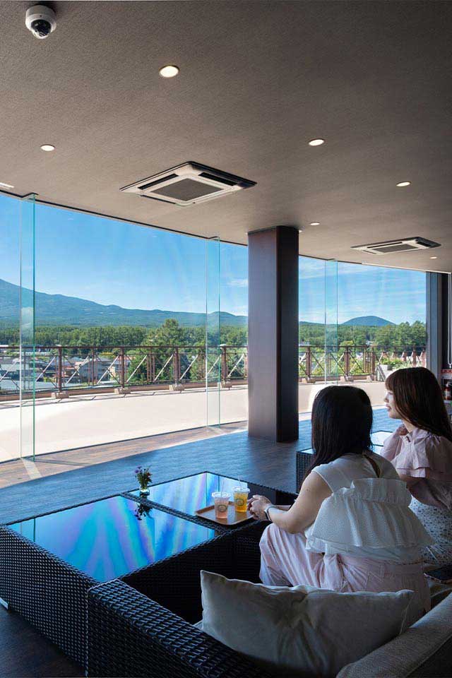 富士山撮影の第一人者として知られる大山行男氏によるプレミアムギャラリー「光」では、様々な富士山写真の数々を展示。さらに「雲」をテーマにした壁一面大迫力のタイムラプス映像を放映しています。